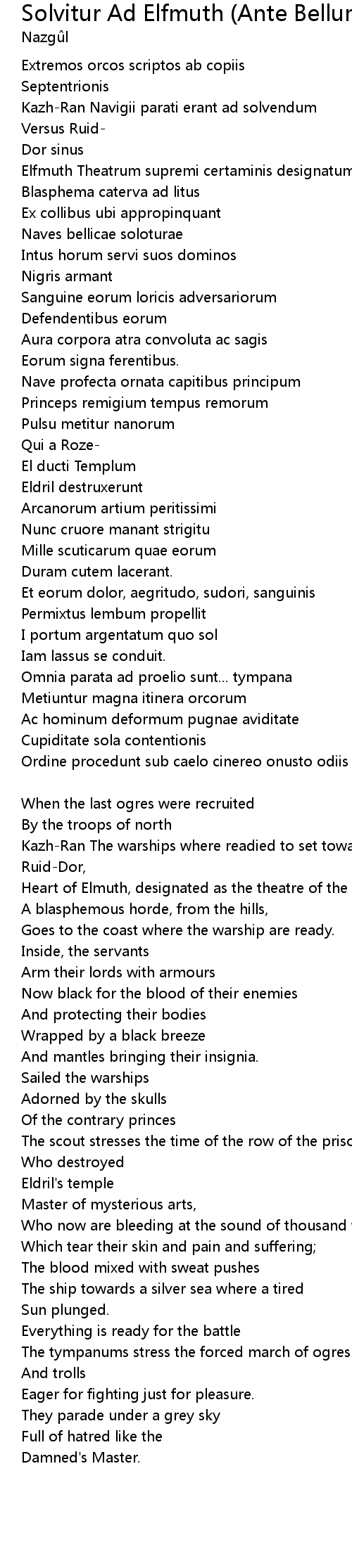 Sicut domini impiarum animarum [THEY SAIL TOWARDS ELFMUTH (BEFORE WAR)] |