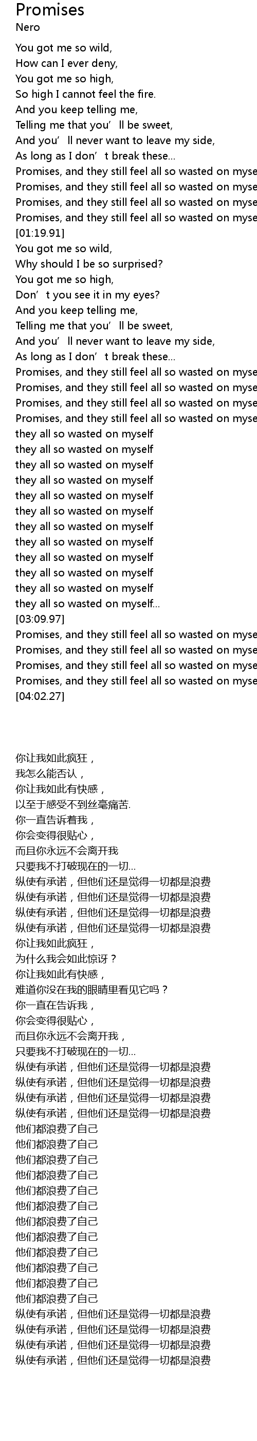 | [03:33.62] | Promises, and they still feel all so wasted on myself |