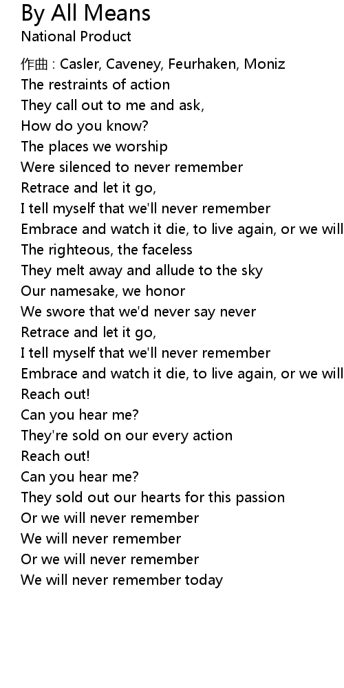 | Or we will never remember | |