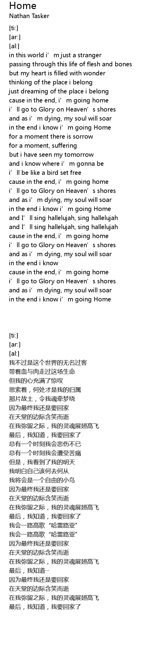 | [02:00.75] | in the end i know i' m going Home |