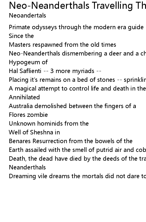 Neo-Neanderthals dismembering a deer and a child in front of the entrance |
