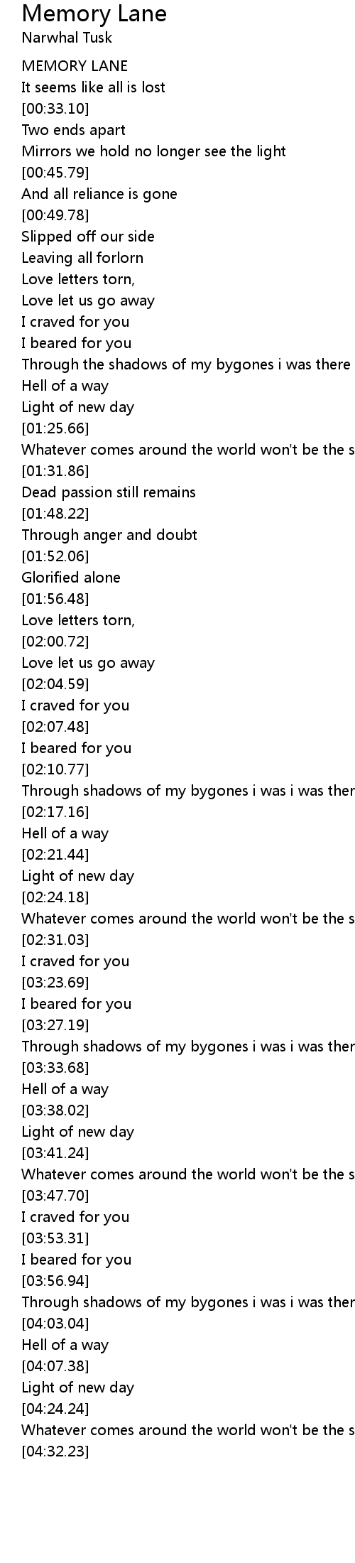 Memory Lane Lyrics