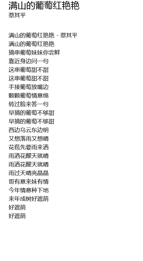 | 满山的葡萄红艳艳 - 蔡其平 | |
