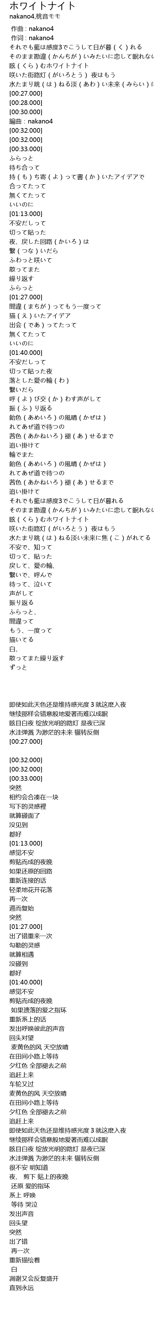 | [02:55.450] | 眩(くら)むホワイトナイト 咲いた街路灯(がいろとう) 夜はもう |