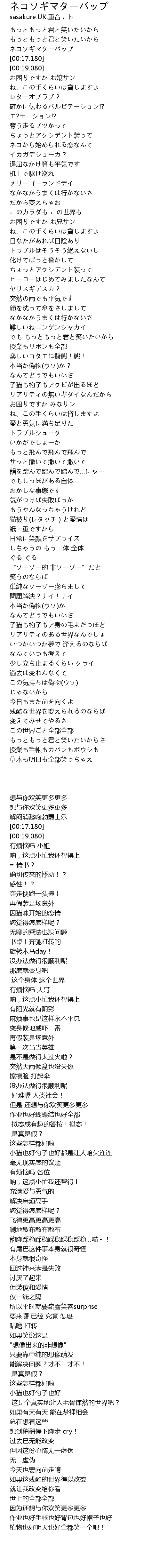 | [02:11.080] | 韻を踏んで踏んで踏んで…にゃー |