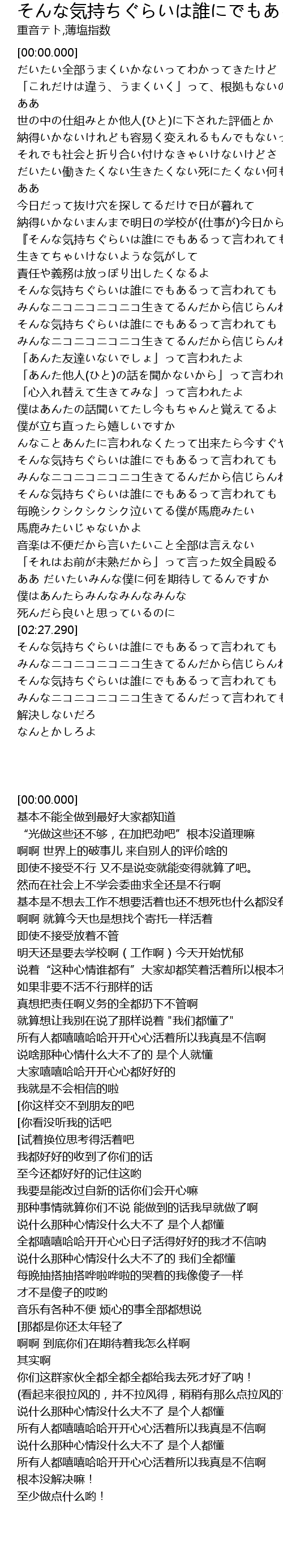 | [02:58.250] | みんなニコニコニコニコ生きてるんだって言われても 解決しないだろ |
