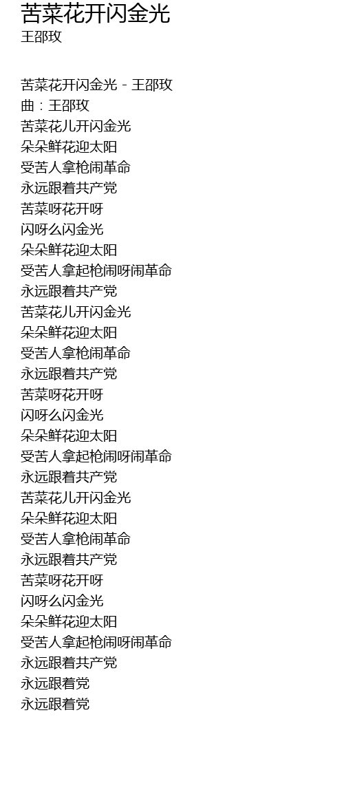 | kǔ cài huā kāi shǎn jīn guāng wáng shào méi | |
