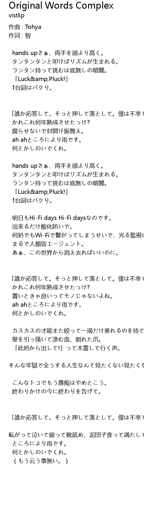 | 「誰か応答して。そっと押して落として。僕は不幸で不幸でたまらねぇ。」なんて事は許されないと思うからこそ。 | |