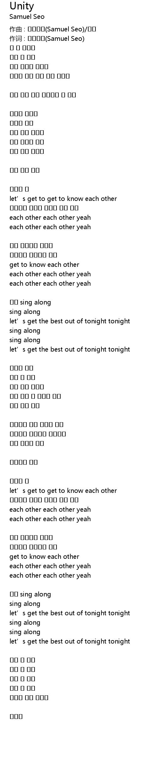 | 作词 : 서사무엘(Samuel Seo) | |