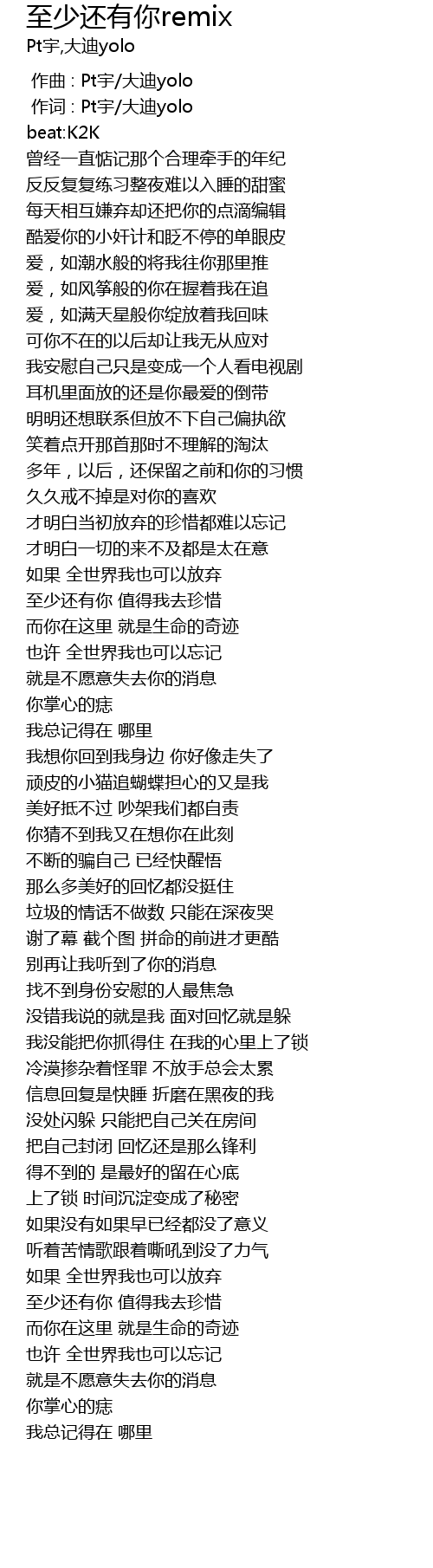 | [00:01.000] | 作词 : Pt宇/大迪yolo |