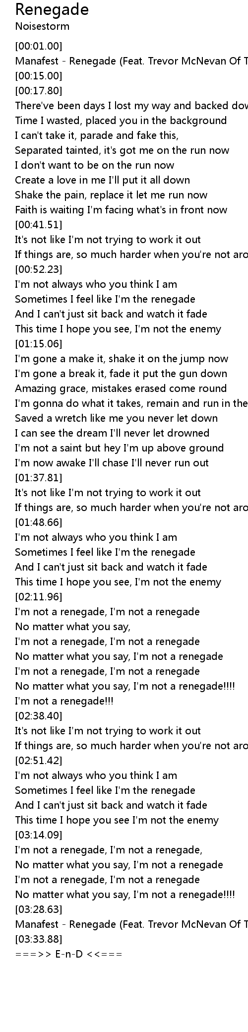 Manafest - Renegade (Feat. Trevor McNevan Of Thousand Foot Krutch) |
