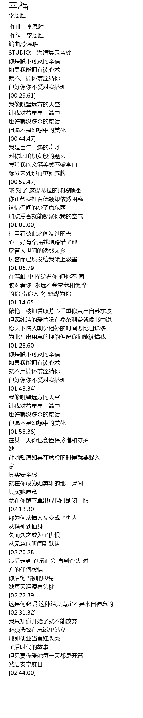 | [00:01.000] | 作词 : 李恩胜 |