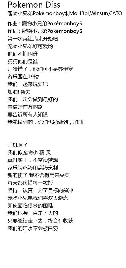 | 作词 : 寵物小兄弟Pokémonboy$ | |
