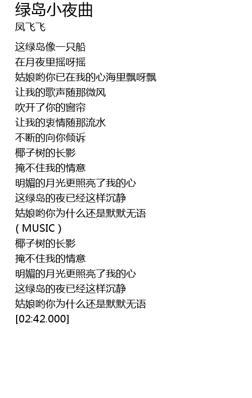 | [02:18.760] | 这绿岛的夜已经这样沉静 |
