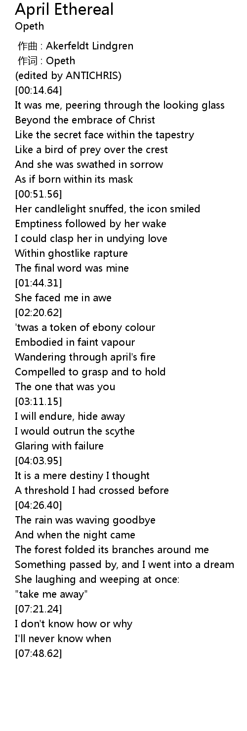 | [00:00.00] | 作曲 : Akerfeldt Lindgren |