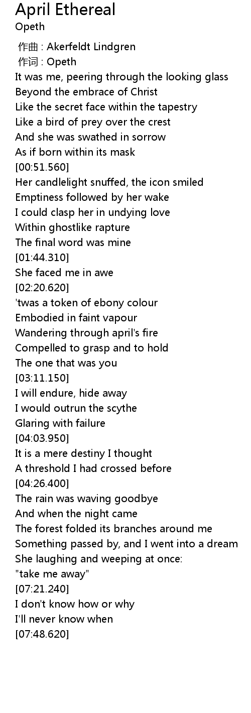 | [00:01.00] | 作词 : Opeth |