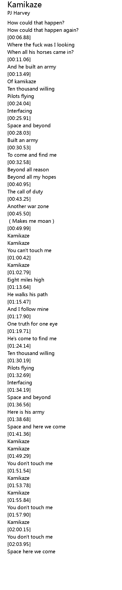 | [00:14.55] | Of kamikaze |