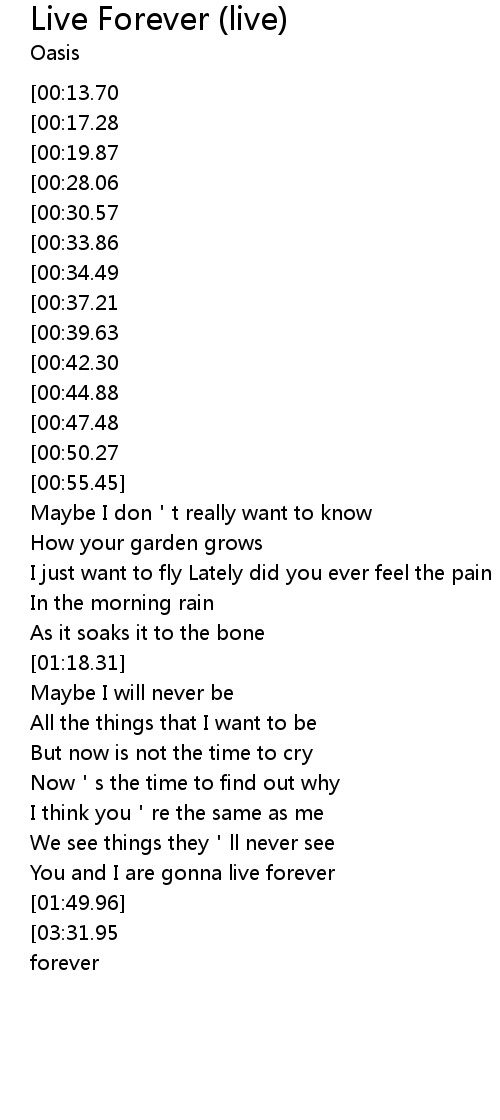 | [03:05.13][00:50.27] | You and I are gonna live forever |