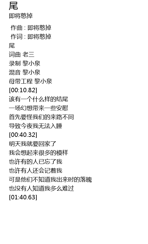 | [00:00.693] | 作词 : 即将憨掉 |