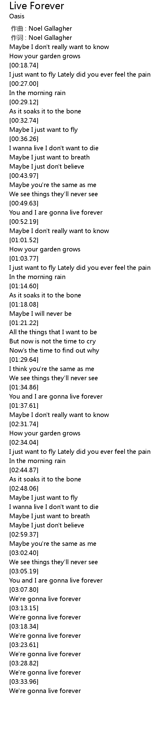 | [03:22.30] | We're gonna live forever |