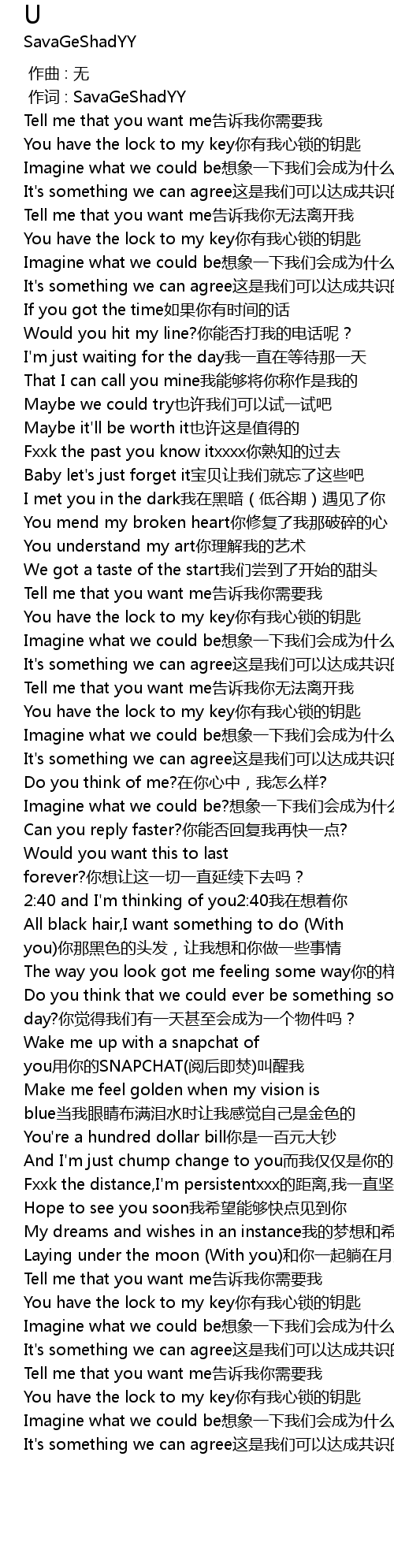 | [00:01.000] | 作词 : SavaGeShadYY |