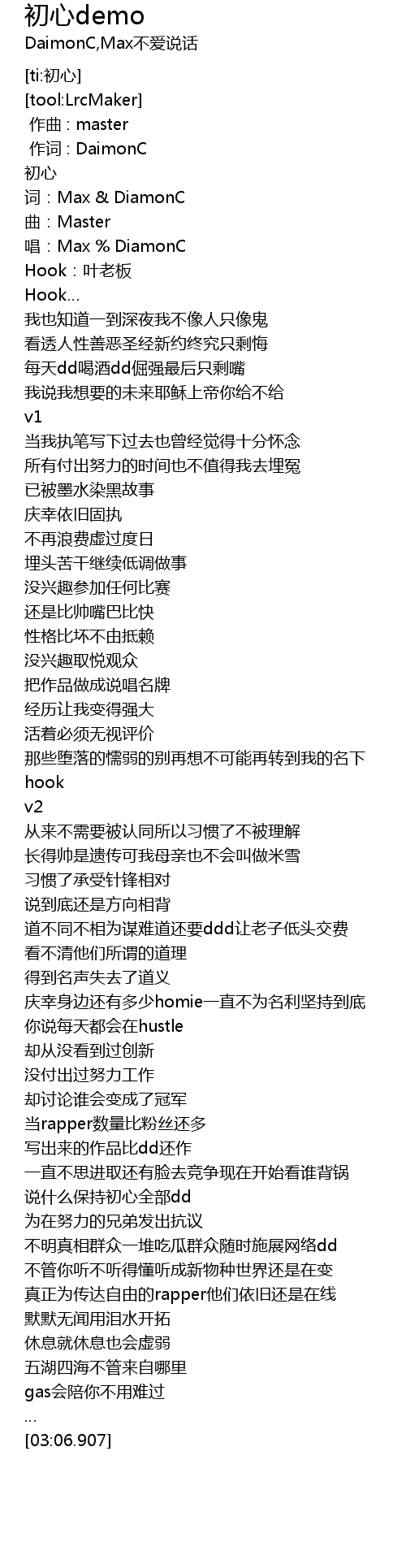 | [00:07.478] | 词:Max & DiamonC |