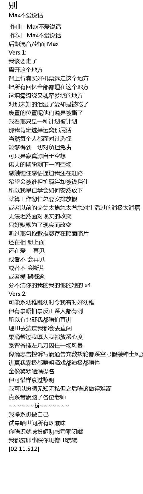 | [00:00.000] | 作曲 : Max不爱说话 |