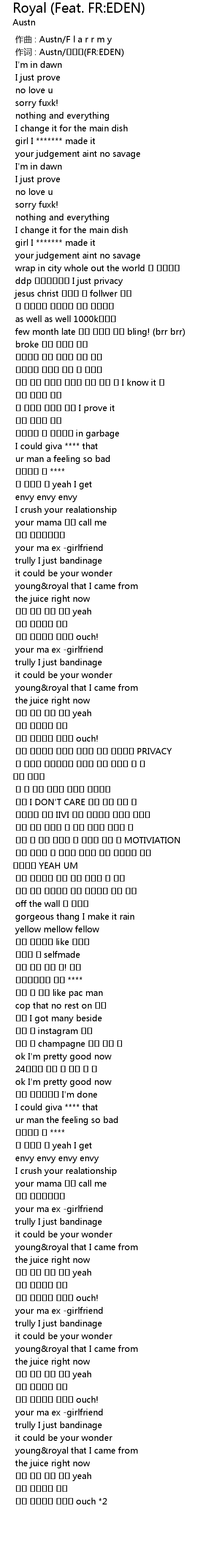 | [00:00.055] | 作词 : Austn/프리든(FR:EDEN) |