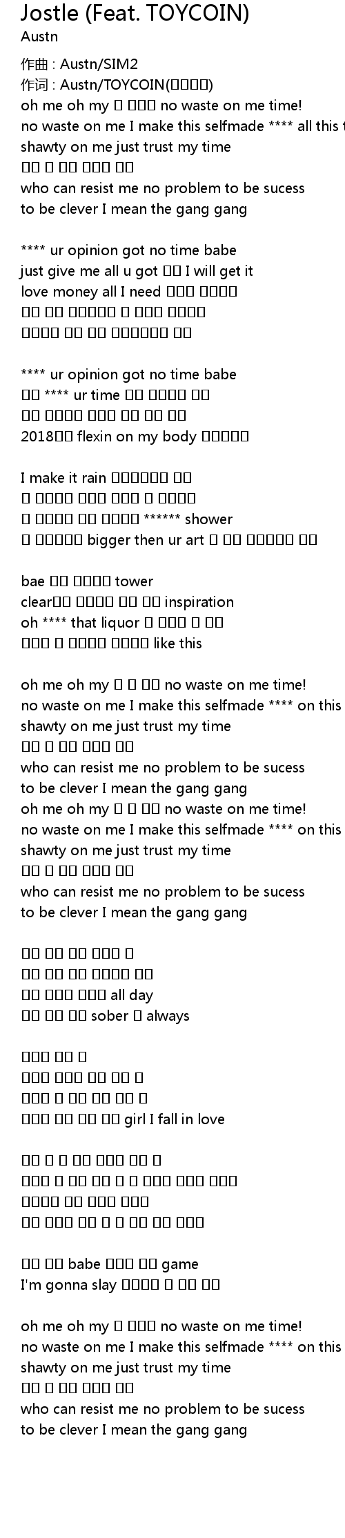 | 作词 : Austn/TOYCOIN(토이코인) | |