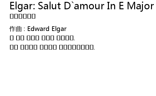 | Song | Elgar: Salut D`amour In E Major Op.12 (엘가: 사랑의 인사) (클래식, 피아노, 자장가, 태교, 수면, 명상, 휴식, ASMR, 백색소음) |