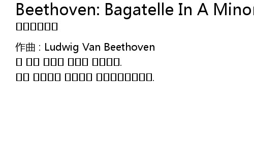 | Song | Beethoven: Bagatelle In A Minor WoO.59 `Fur Elise` (베토벤: 엘리제를 위하여) (클래식, 피아노, 자장가, 태교, 수면, 명상, 휴식, ASMR, 백색소음) |