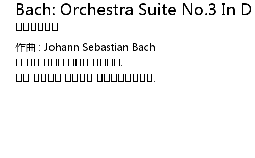 | Song | Bach: Orchestra Suite No.3 In D Major BWV.1068 - II. Air `Air On The G String` (바흐: G선상의 아리아) (클래식, 피아노, 자장가, 태교, 수면, 명상, 휴식, ASMR, 백색소음) |