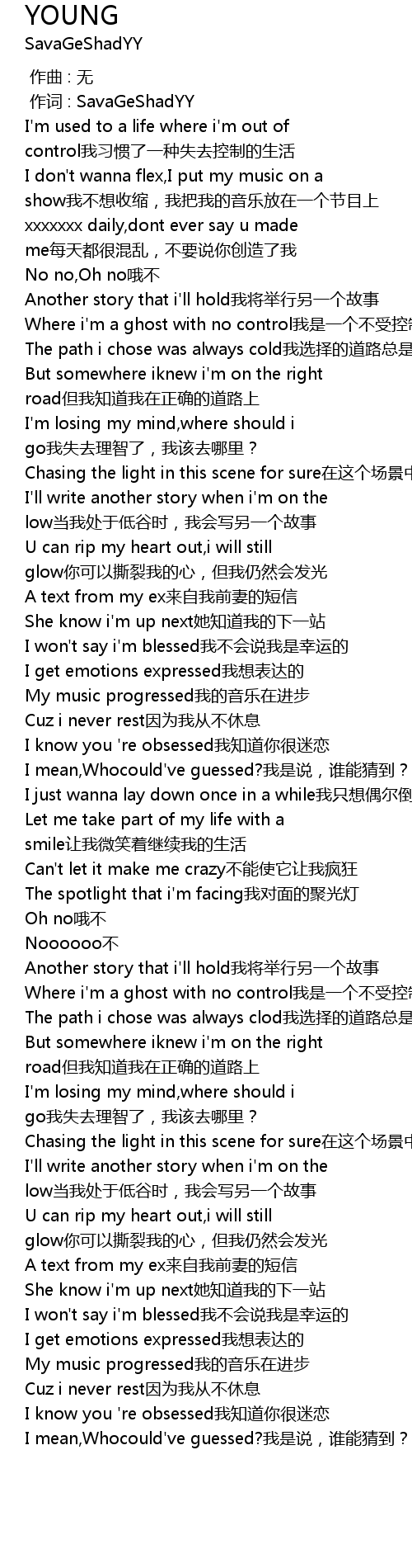 | [00:01.000] | 作词 : SavaGeShadYY |