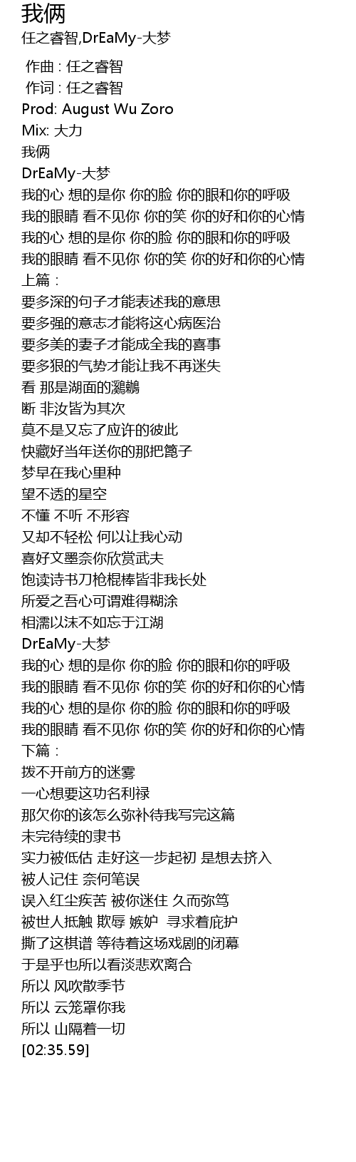 | [02:15.77] | 误入红尘疾苦 被你迷住 久而弥笃 |