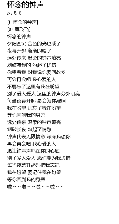 | [01:59.09] | 钟声代表无限情意 深深我想你 |