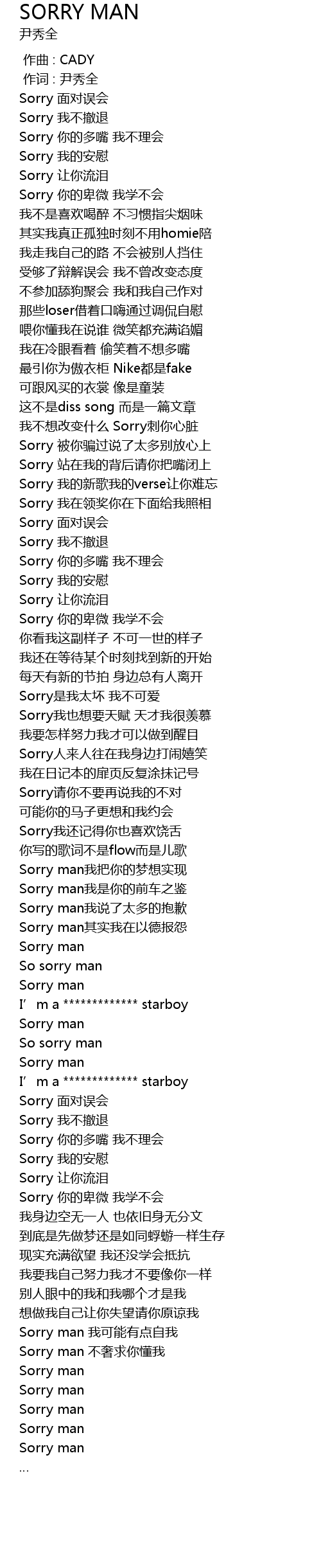 | [03:21.419] | Sorry man 不奢求你懂我 |