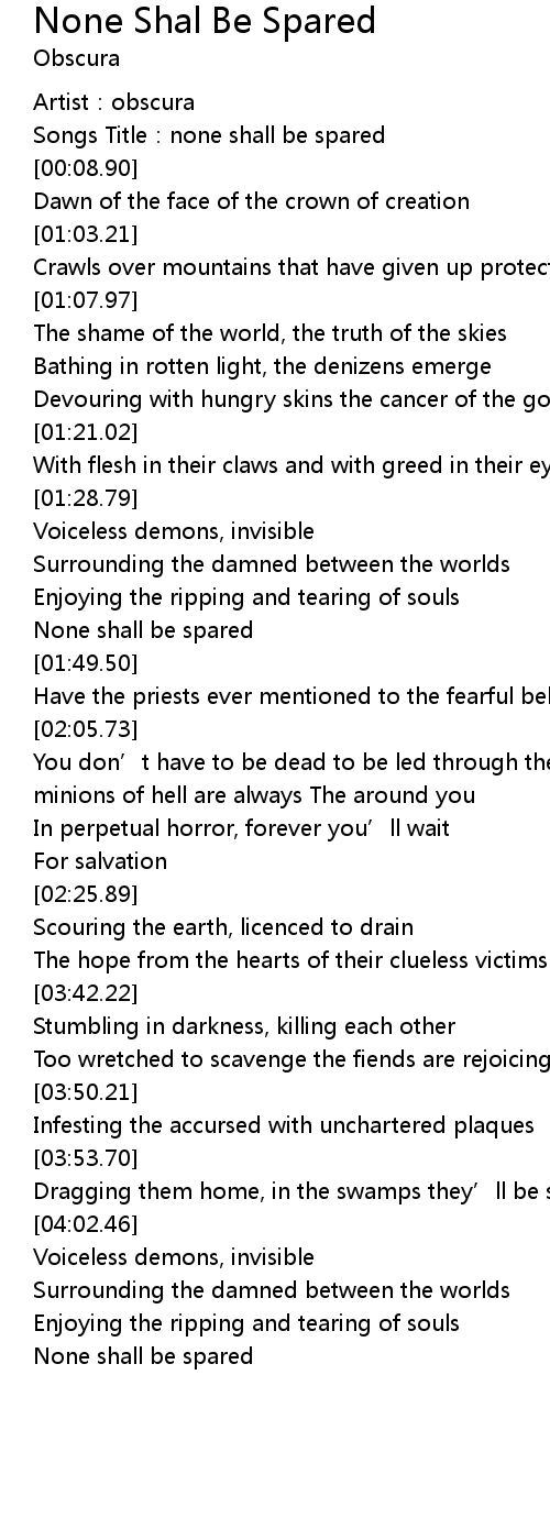 | [00:06.83] | Songs Title:none shall be spared |