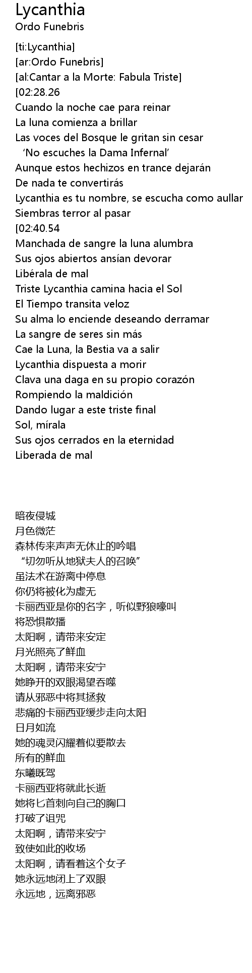 | [02:18.07] | Lycanthia es tu nombre, se escucha como aullar |
