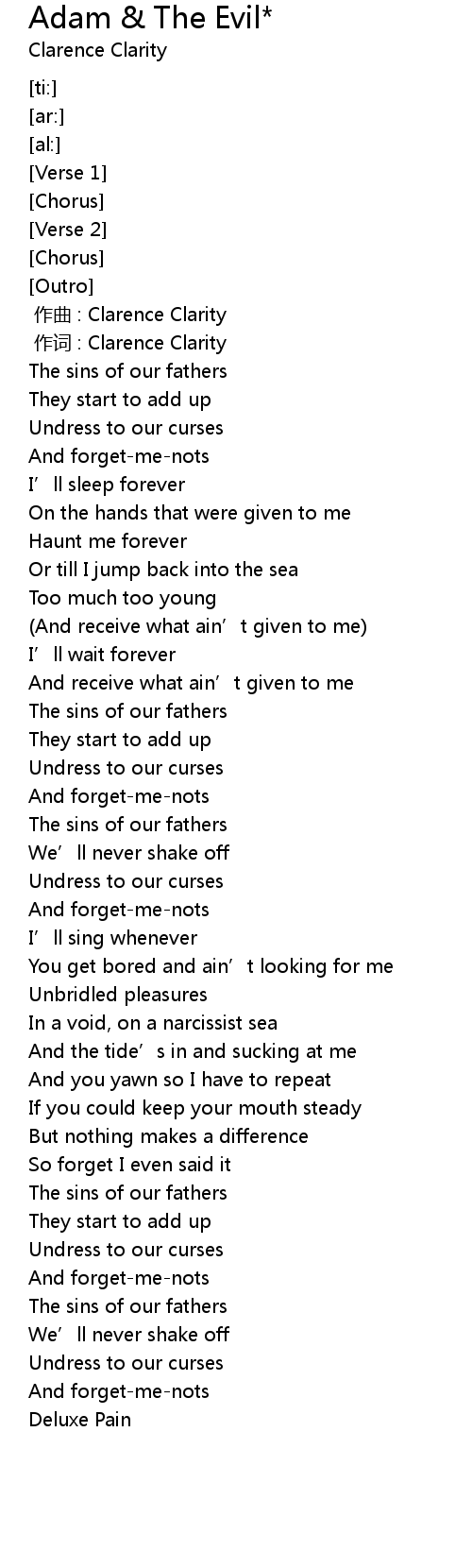 | [00:00.000] | zuò qǔ : Clarence Clarity |