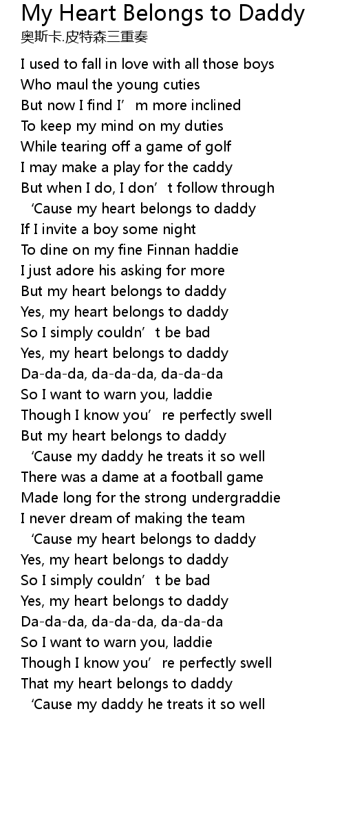 | ' Cause my heart belongs to daddy | |