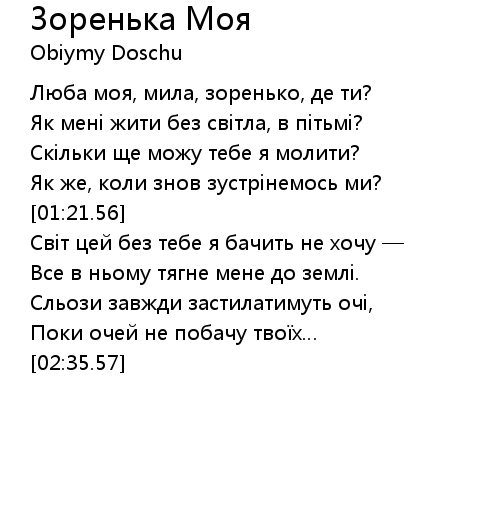 | [02:21.93] | Поки очей не побачу твоїх… |