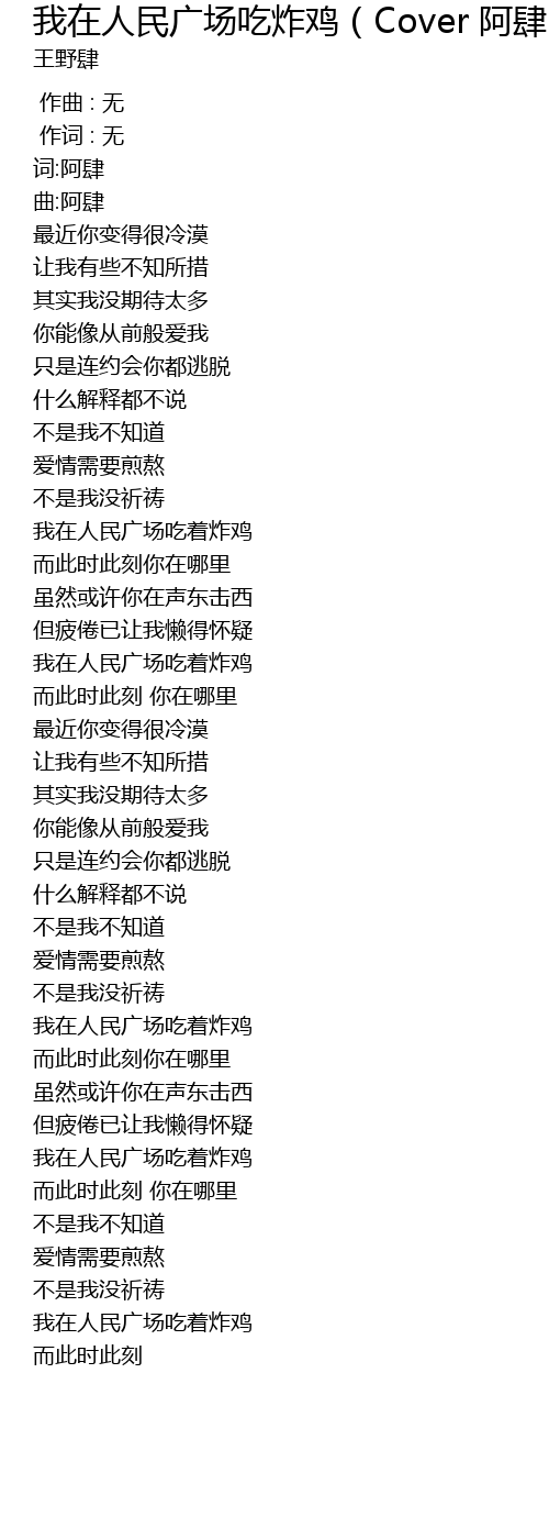 | [03:00.00] | 我在人民广场吃着炸鸡 |