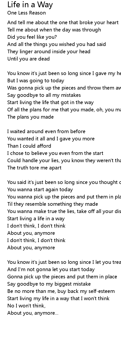 Start living my life in a way that I won't think |