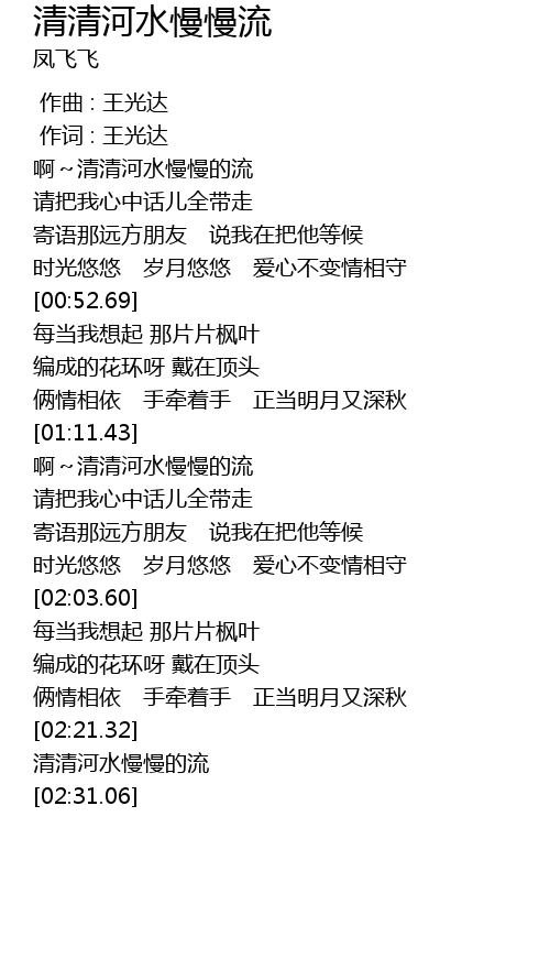 | [01:29.10] | 啊~清清河水慢慢的流 |