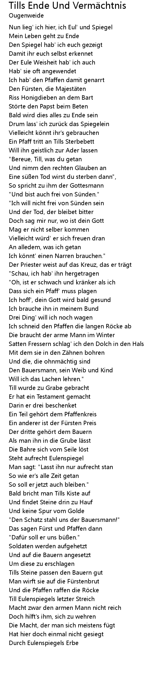 | Nun lieg' ich hier, ich Eul' und Spiegel | |
