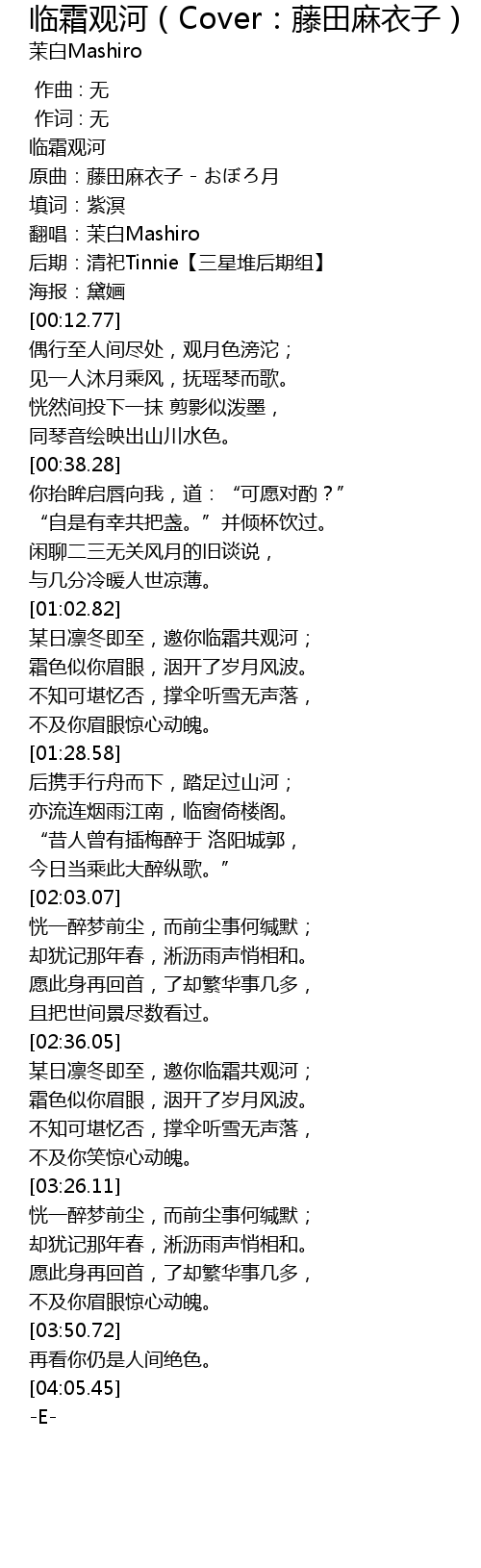 | Song | 临霜观河(Cover:藤田麻衣子) |