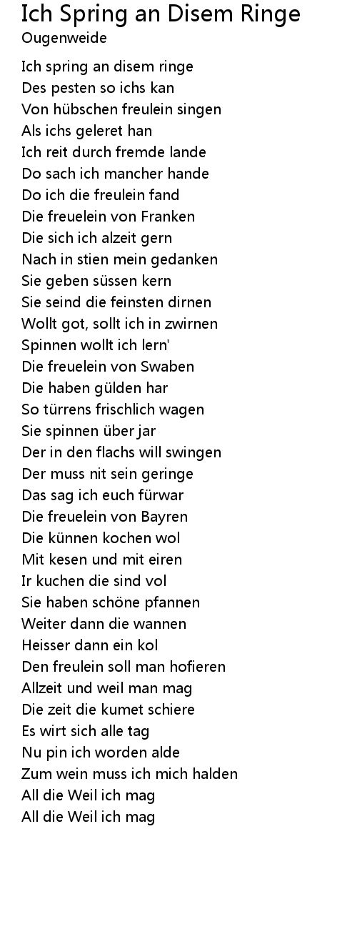 | Song | Ich Spring an Disem Ringe |