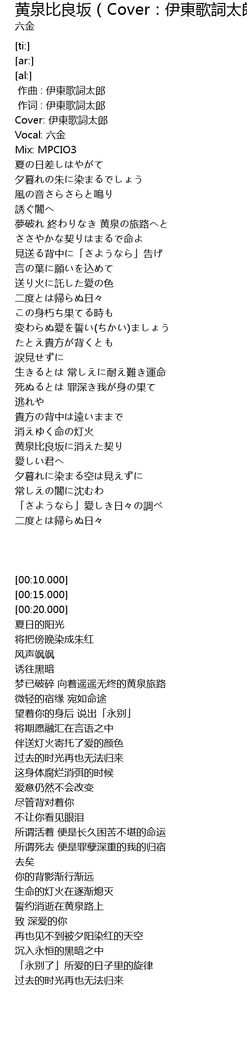 | [00:10.000] | Cover: 伊東歌詞太郎 |