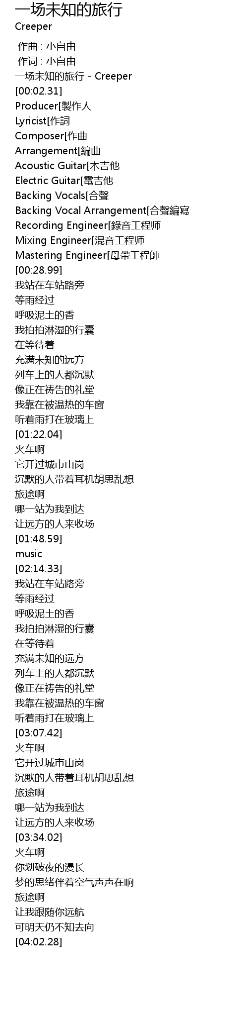 | [00:01.31] | 一场未知的旅行 - Creeper |