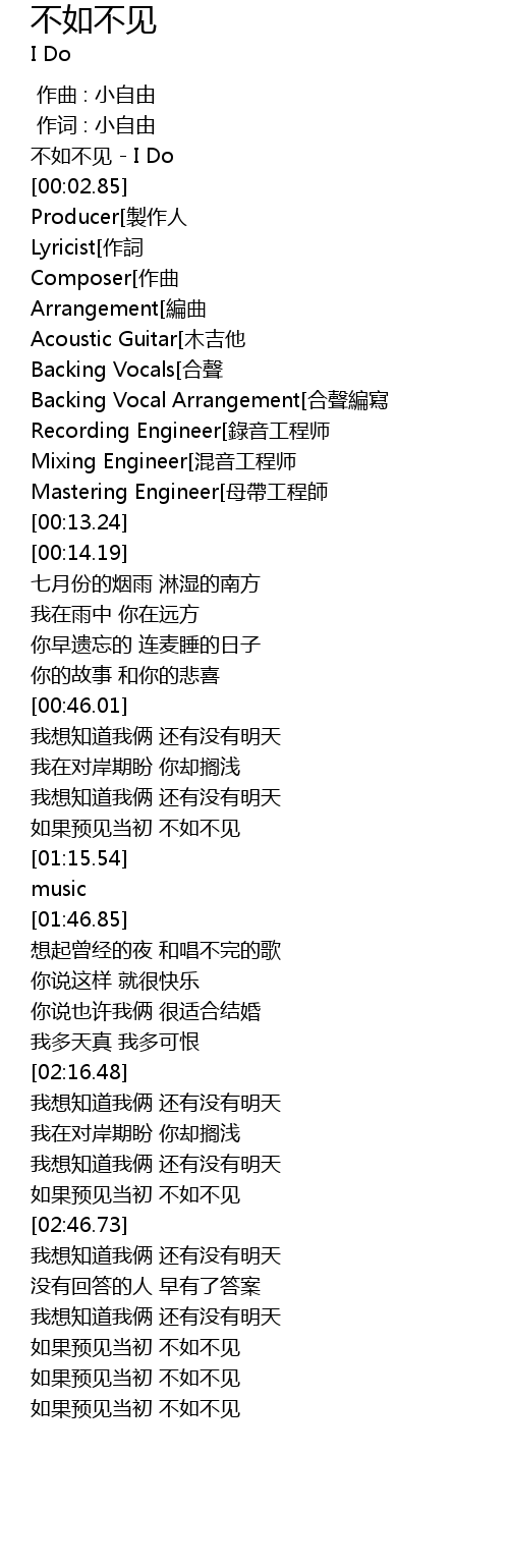 | [01:09.15] | rú guǒ yù jiàn dāng chū bù rú bú jiàn |